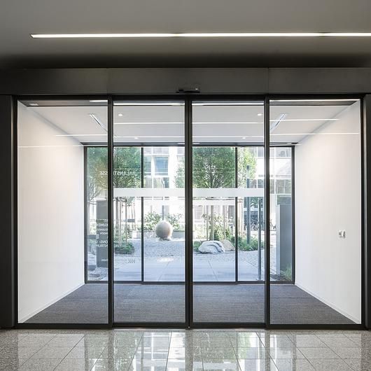 درب شیشهای اتوماتیک، به دلیل ساختار شفاف و طراحی تمیز، جلوهای لوکس و امروزی به فضا میدهد.